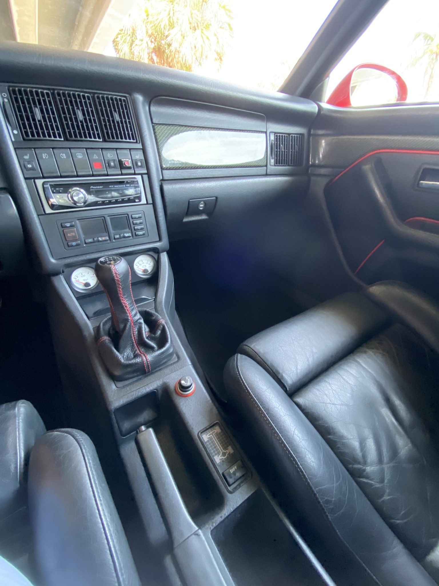 Enhanced with aftermarket upgrades including a stainless-steel exhaust system, 2.0T FSI ignition coils, and KW coilovers, this RS2 exudes enhanced performance capabilities while retaining its legendary reliability. Noteworthy factory features abound, such as the Torsen center differential, locking rear differential, power-operated sunroof, and Porsche-branded brakes. The distinctive five-spoke 17″ Cup wheels, borrowed from the 964 Turbo, add a touch of sporting elegance to its appearance.