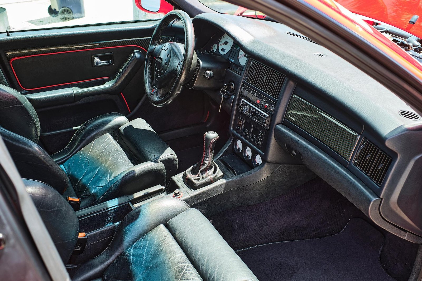 The 1995 Audi RS2 Avant, a cherished acquisition of the current owner for over 17 years in Costa Rica before its recent import to the US in 2022, presents a captivating blend of performance and versatility. This remarkable vehicle is propelled by a turbocharged 20-valve 2.2L inline-five engine, paired with a six-speed manual gearbox and Quattro all-wheel drive, delivering an exhilarating driving experience. Dressed in a striking red exterior hue complemented by sleek black leather upholstery, this RS2 boasts both style and substance.