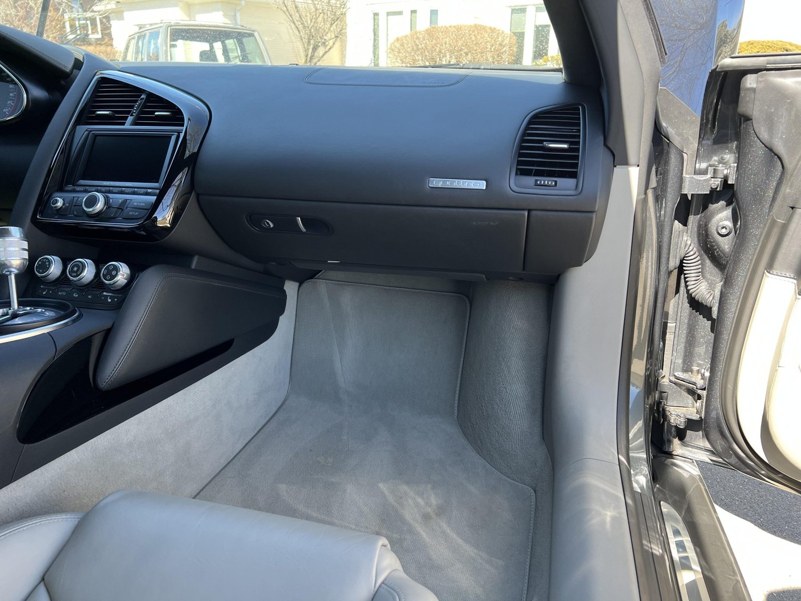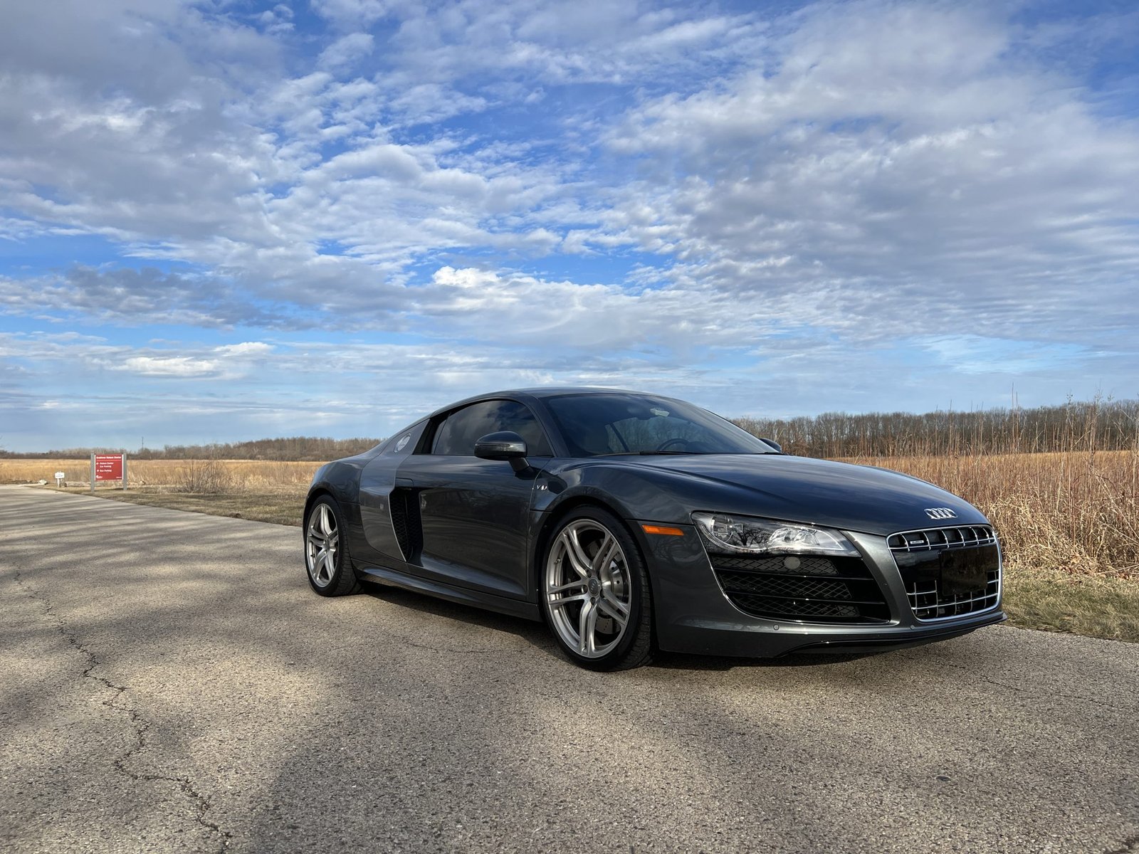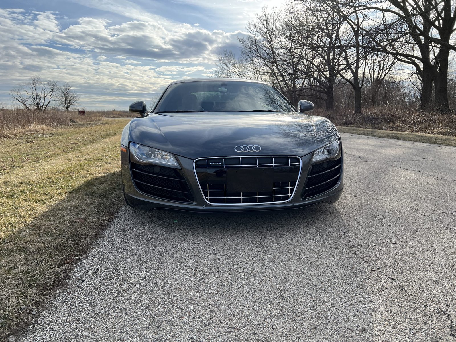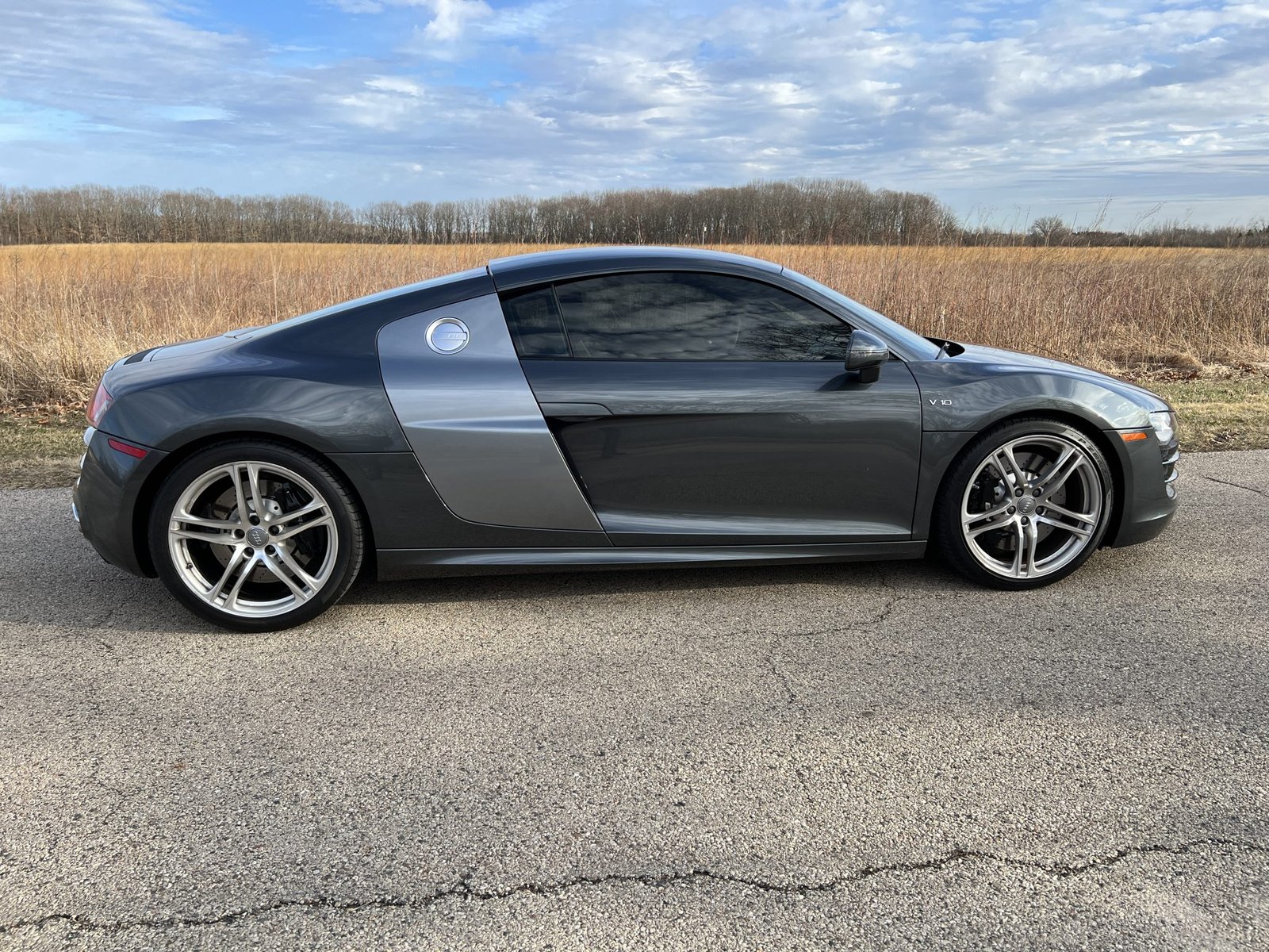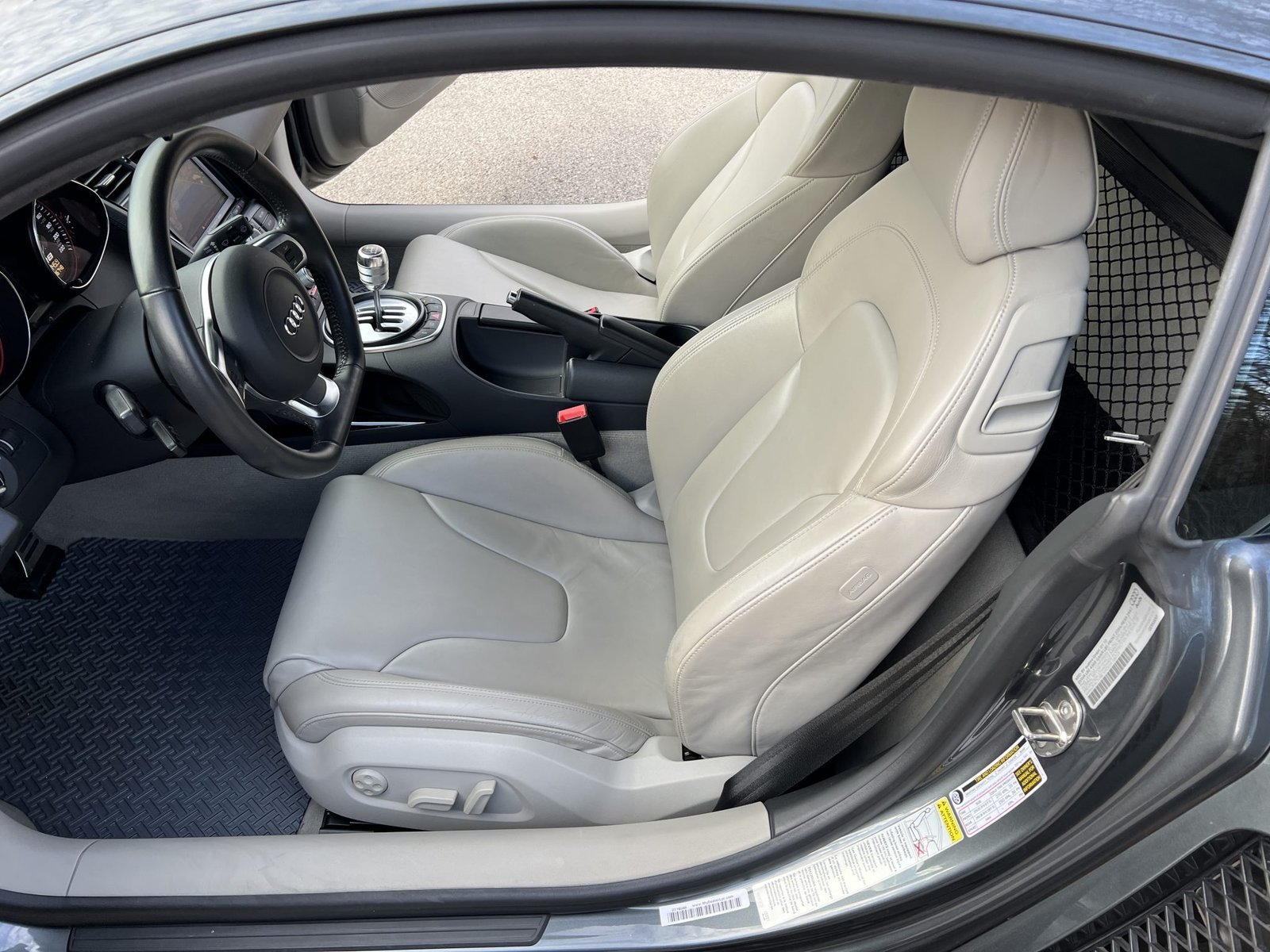 This impeccable 2010 Audi R8 coupe, boasting a clean accident history and exceptional reliability, is propelled by a potent 5.2-liter FSI V10 engine, delivering exhilarating performance to all four wheels through a precise six-speed manual transaxle. Dressed in an elegant Daytona Gray Pearl exterior finish complemented by Apollo Silver side blades, this R8 exudes sophistication and style.