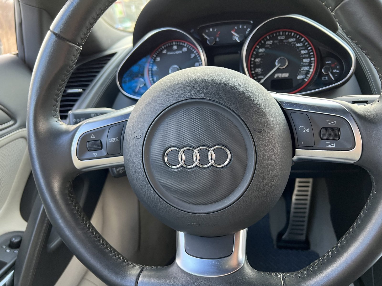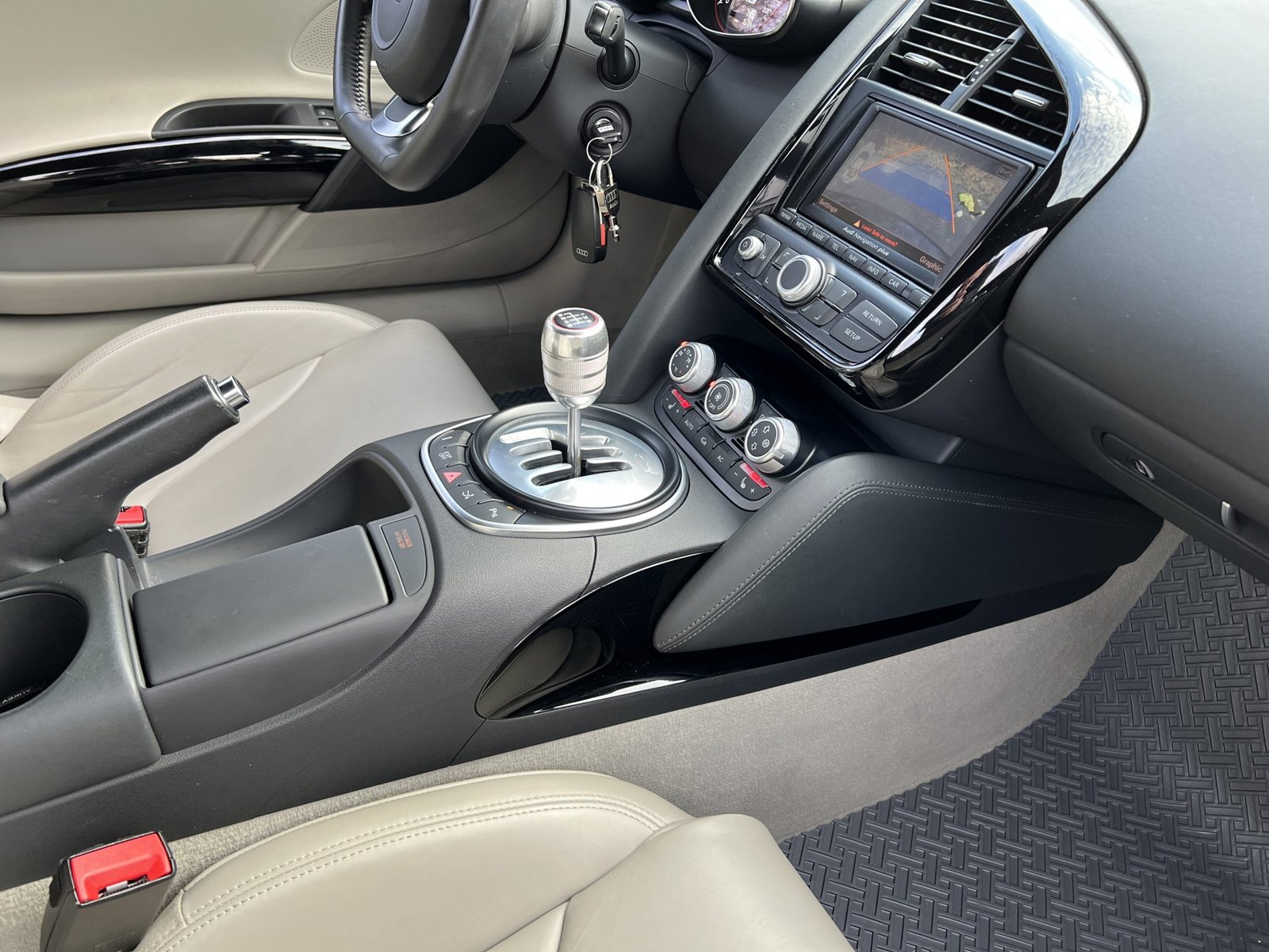 Under the hood lies the formidable 5.2-liter FSI V10 engine, producing a commanding 525 horsepower and 391 lb-ft of torque, ensuring blistering acceleration and exhilarating performance on demand. Mated to a smooth-shifting six-speed manual transaxle and Quattro all-wheel drive, this R8 delivers an engaging driving experience with precise handling and exceptional traction.